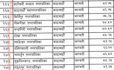काठमाडौंमा कुन पालिकाले कति अंक ल्याए ?
