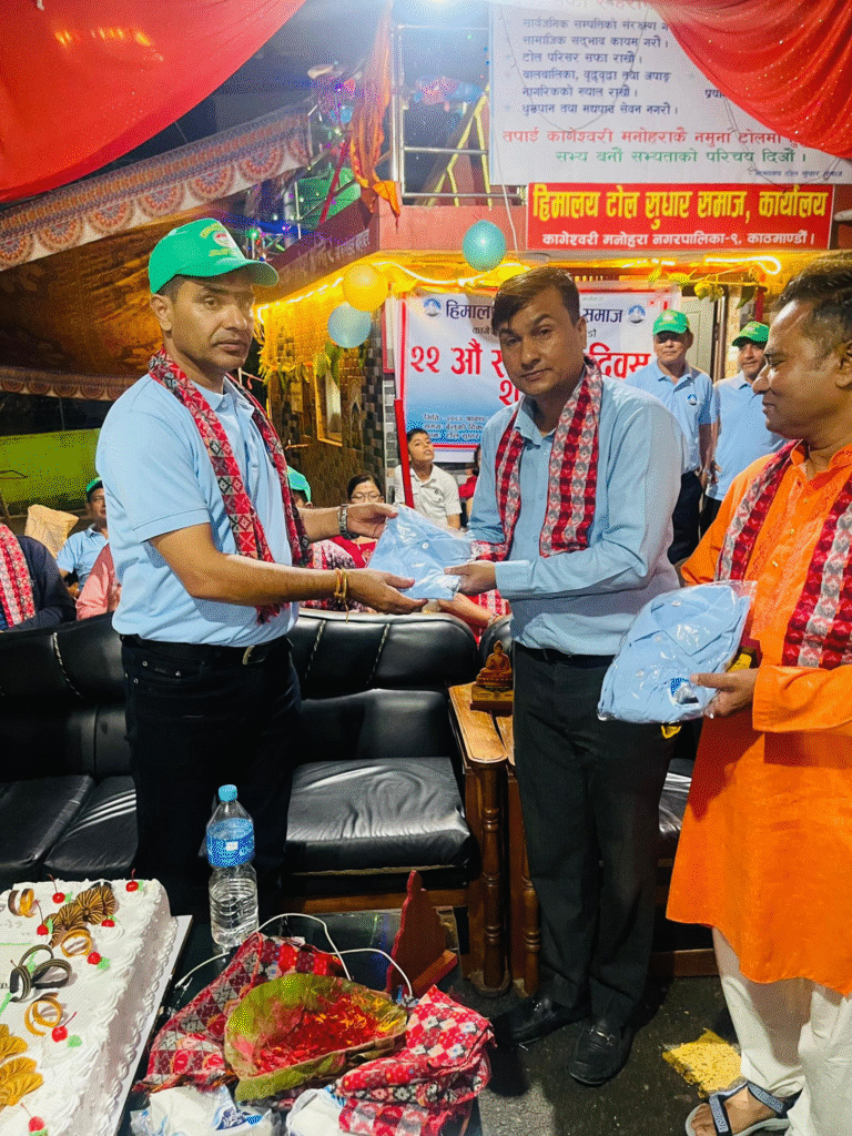 उहाँले अगाडि थप्दै भन्नुभयो, ‘हिमालय टोलले जुन प्रतिबद्धताका साथ सामाजिक उत्तरदायित्व निर्वाह गर्दै आइरहेको छ, त्यो स्थानीय सरकार र अन्य टोल विकास संस्थाहरूका लागि प्रेरणाको स्रोत हो। यस्ता संस्थाहरू नै समृद्ध नगरको आधारस्तम्भ हुन्। नगरपालिकाले यस्ता सामाजिक संस्था र पहललाई सधैं साथ दिनेछ।’